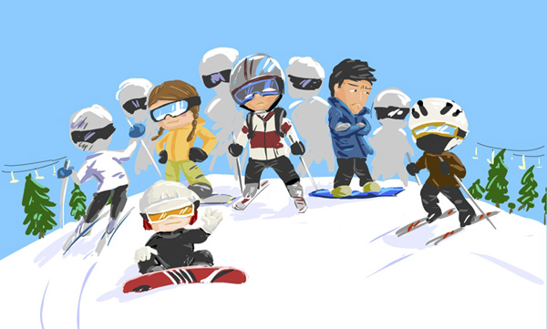 Mountain High 滑雪一天归来,画个团体像做纪念 . 最在前排的是本人啦.